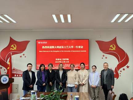 澳大利亚昆士兰大学一行来访光机电工程学院 12月12日上午,澳大利亚昆士兰大学工学部国际高级事务经理Angela Li一行5人来访光机电工程学院,国际处副处长陈立杰、学院副院长周竹和机械专业负责人吕艳接待来访客人。陈立杰介绍了我校整体发展概况,并指出两校在人才培养和学科建设方面合作潜力巨大。他希望依托两校现有良好合作基础,持续拓宽合作领域、深化合作内涵,推动双方合作关系迈向更高水平。周竹对Angela Li一行来访表示热烈欢迎,并就学院发展历程、学科专业建设...