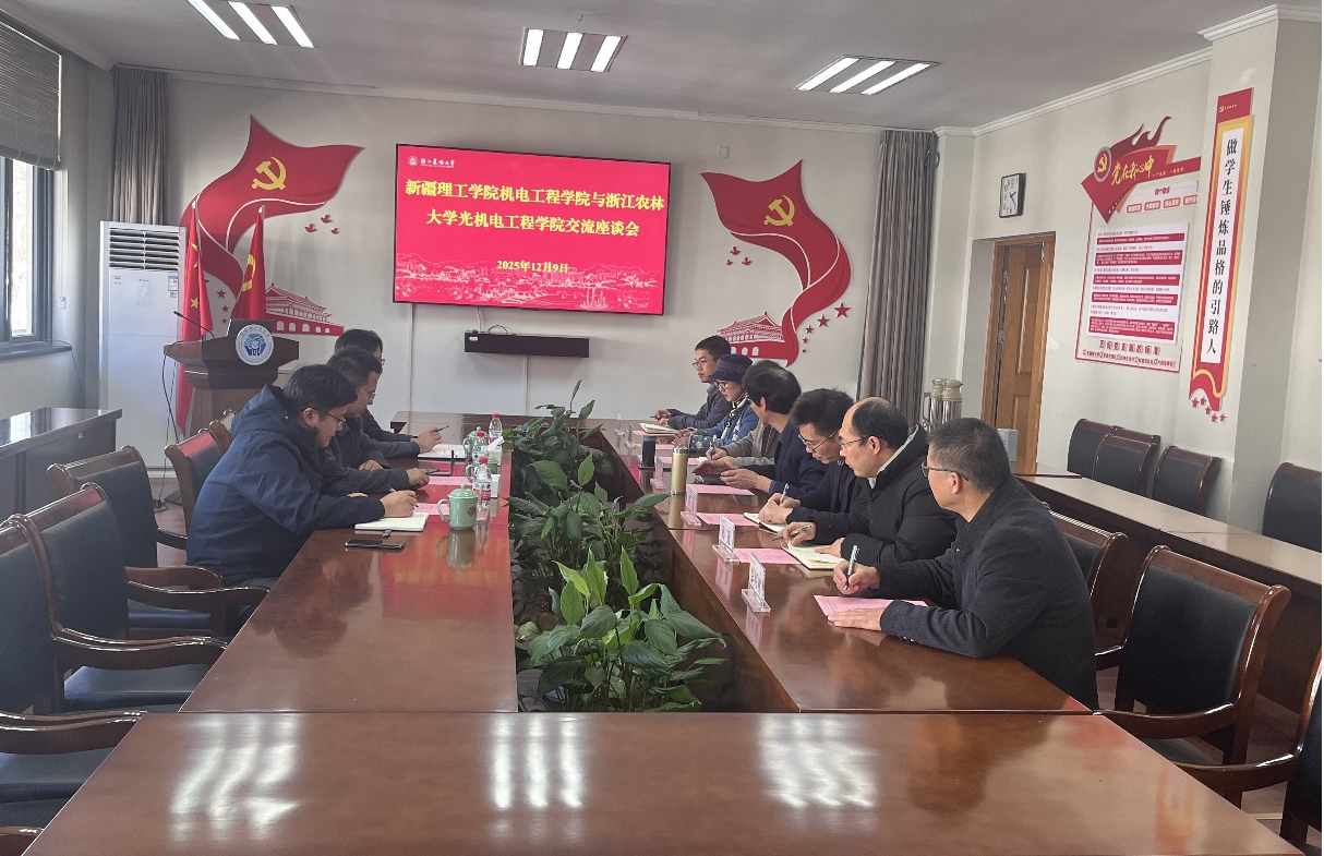 新疆理工学院机电工程学院一行莅临我院调研交流 12月9日,新疆理工学院机电工程学院院长庄可佳、副院长刘向东、教师陈棒棒等一行3人来我院调研指导,学院院长周国泉、副院长胡灿、学术副院长胡栋等参加座谈交流。周国泉代表学院对庄可佳一行的到来表示热烈欢迎,并详细介绍了学院的基本情况、办学条件、师资队伍、人才培养以及科学研究等方面的情况。庄可佳院长对新疆理工学院机电工程学院在专业建设、师资队伍、教学科研等方面取得的成果和面临的挑战进行介绍,并希望借此机...