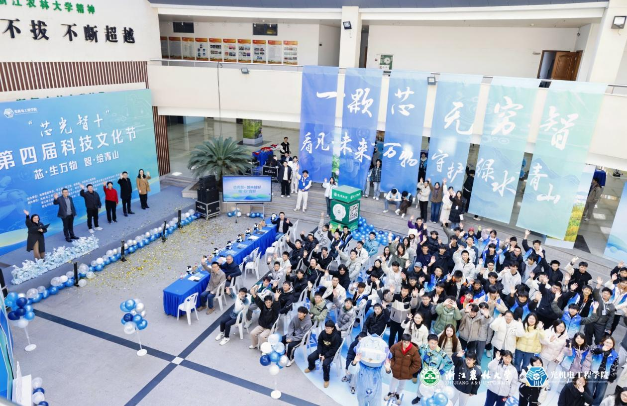 【芯·生万物,智·绘青山】光机电工程学院第四届“芯光智+”科技文化节盛大开幕 12月6日上午,浙江农林大学学生活动中心一楼气氛热烈,以“芯·生万物,智·绘青山”为主题的光机电工程学院第四届“芯光智+”科技文化节在此隆重开幕。本届文化节旨在将学院专业特色与学校“生态育人育生态人”的办学理念深度融合,引导学生在感知前沿科技之“芯”澎湃动力的同时,运用智慧绘就可持续发展的绿水青山。开幕式在充满活力的歌曲《闪耀》中拉开序幕,点燃了全场的热情。光机电工程学院党委书记何利平发表了热情洋溢...