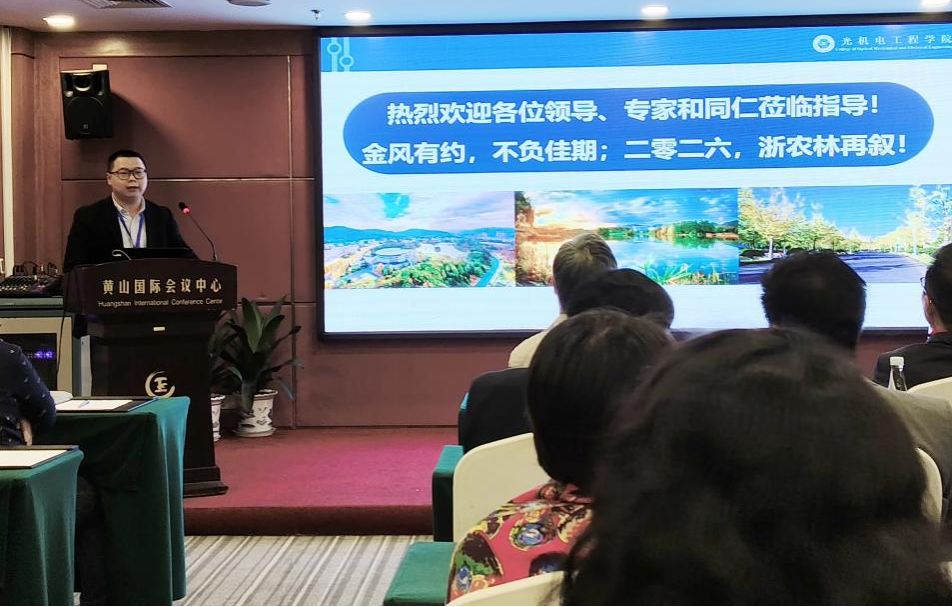 作为第38届年会的承办单位代表,电工电子教学团队核心成员、学院副院长周竹在年会闭幕式上作了表态发言,并简要介绍了学校和学院的基本情况。他真诚地邀请全国各高校教师、教学仪器设备厂商及出版社代表于2026年秋季齐聚杭州临安,共同参与这场备受瞩目的学术交流盛会。