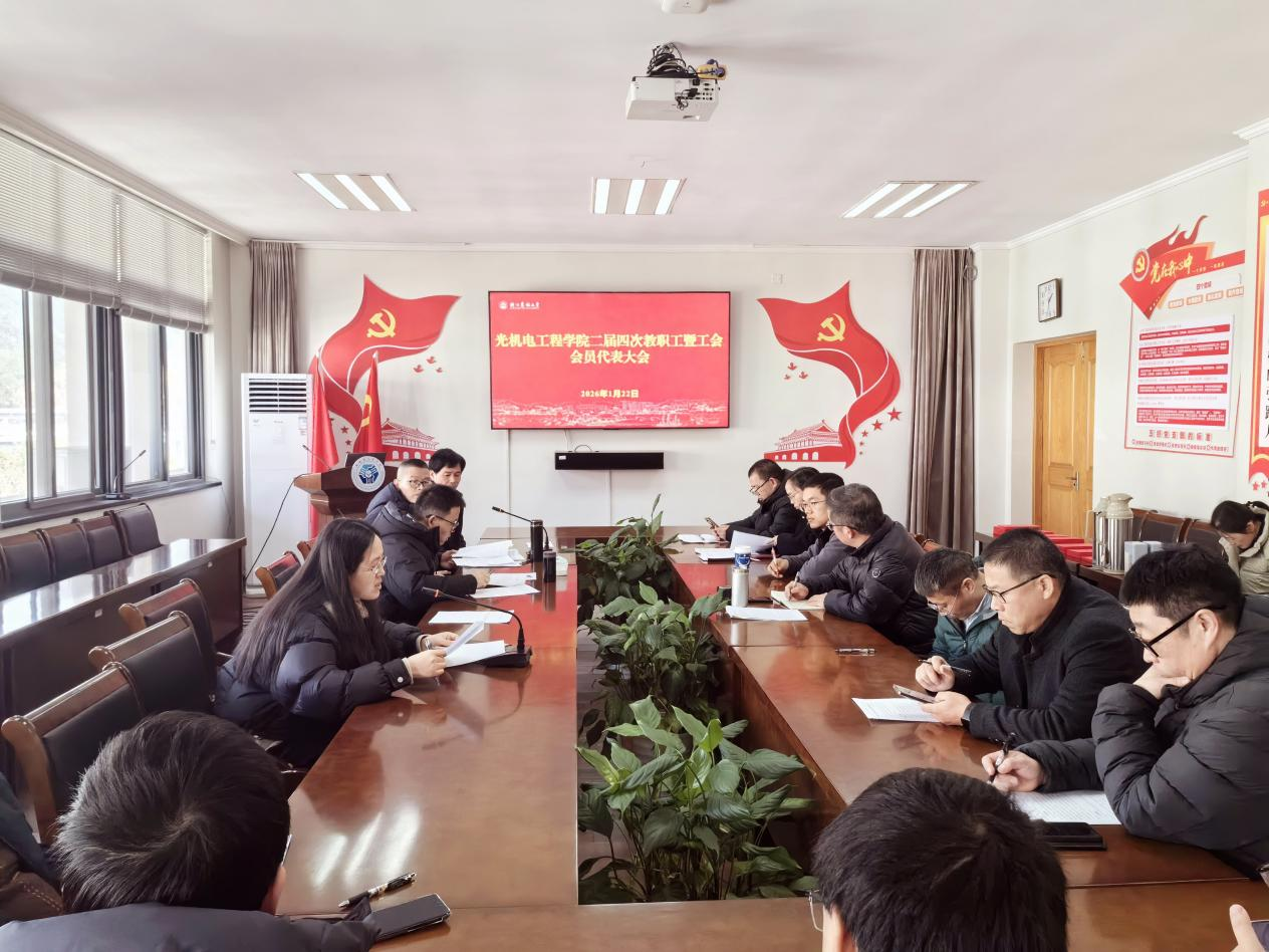 2026年1月22日下午,光机电工程学院二届四次教职工暨工会会员代表大会在学院会议室隆重召开。会议由学院党委书记何利平主持,全体教代会代表出席。