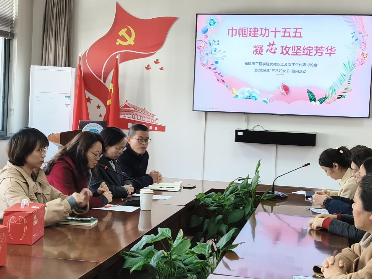 在大讨论环节,教学科研岗代表樊艳老师表示,要以教为本,以研为核,做学生成长的引路人。管理岗代表崔雨晴老师、女学生代表肖晓晓同学就如何立足自身岗位,为学校“十五五”发展贡献“她力量”真诚发表意见建议。无论是教书育人、科研攻关,还是求知求学,光机电工程学院全体女性师生,立足岗位,尽显芳华。她们用自己的方式,书写光机电女性的芯光篇章。