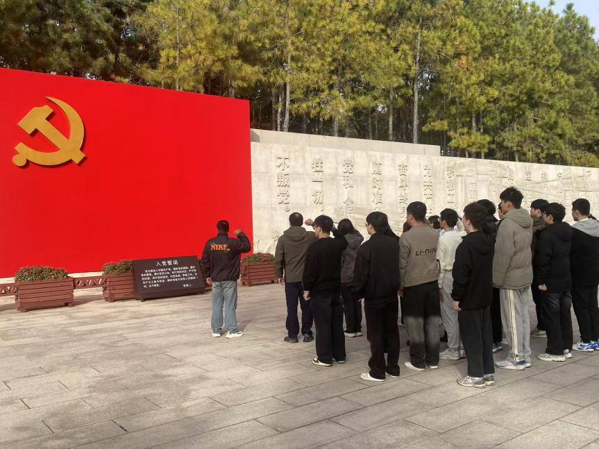 宣誓明志,初心如磐。在南湖革命纪念馆宣誓广场,全体党员庄严肃立。面对鲜红的党旗,党员们在指导老师带领下庄严宣誓,誓言铿锵,字字千钧,表达了对党的无限忠诚与为共产主义事业奋斗终身的坚定决心。指导老师勉励大家铭记入党初心,践行党的宗旨,在学习生活中发挥先锋模范作用。